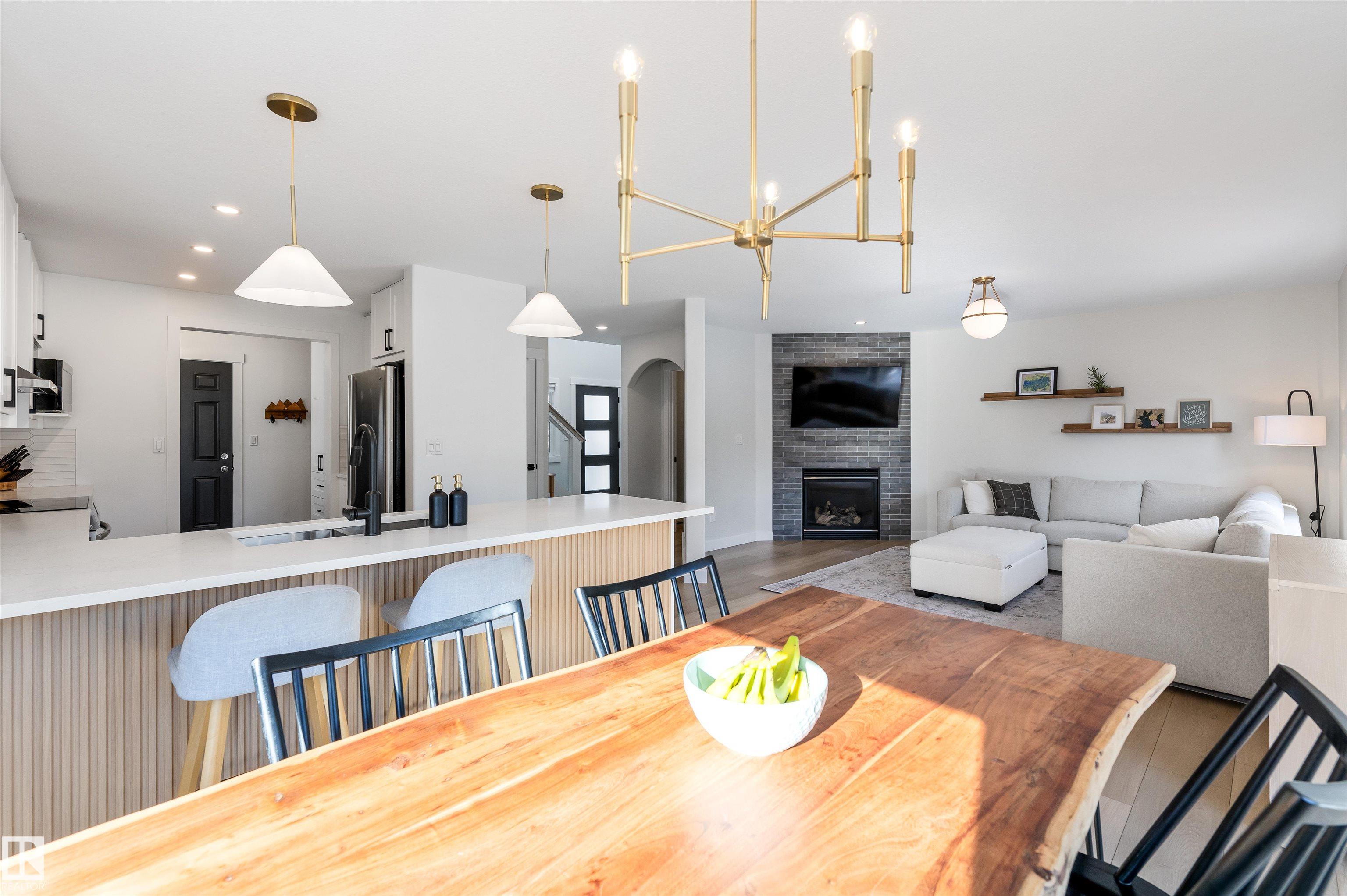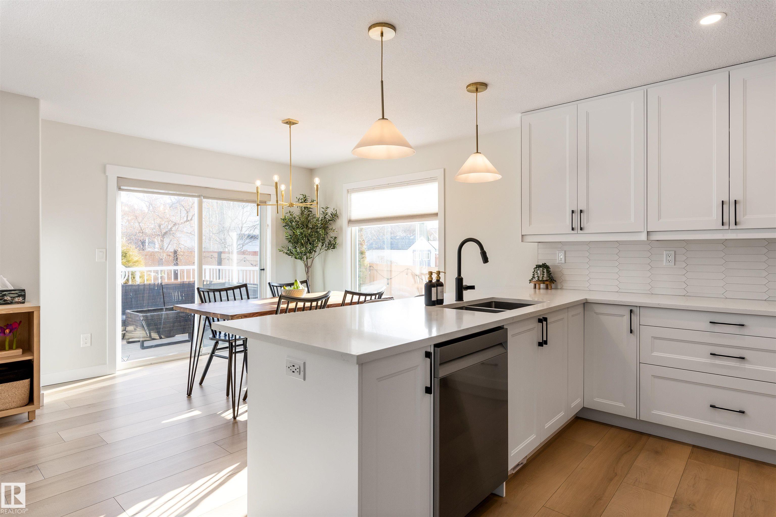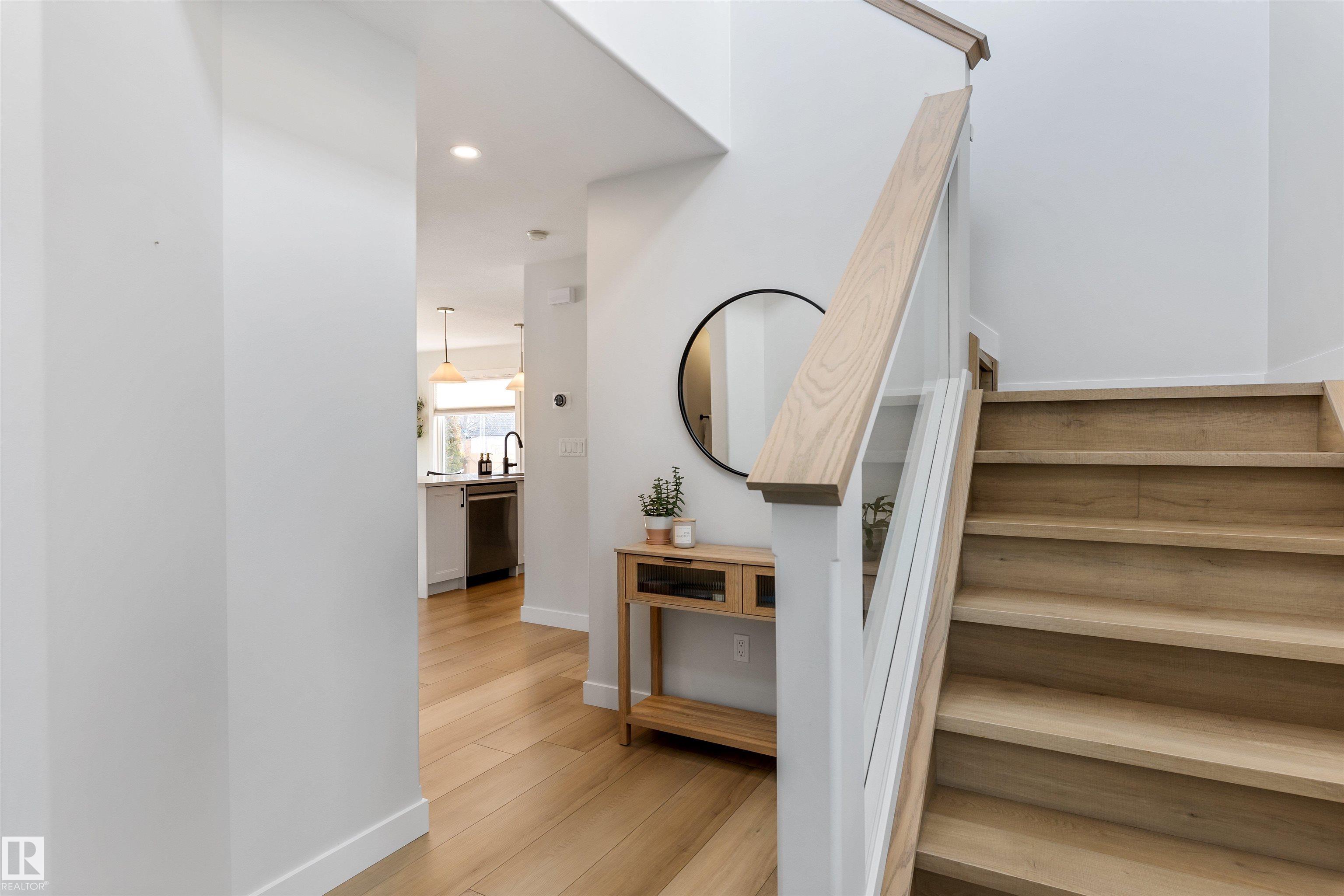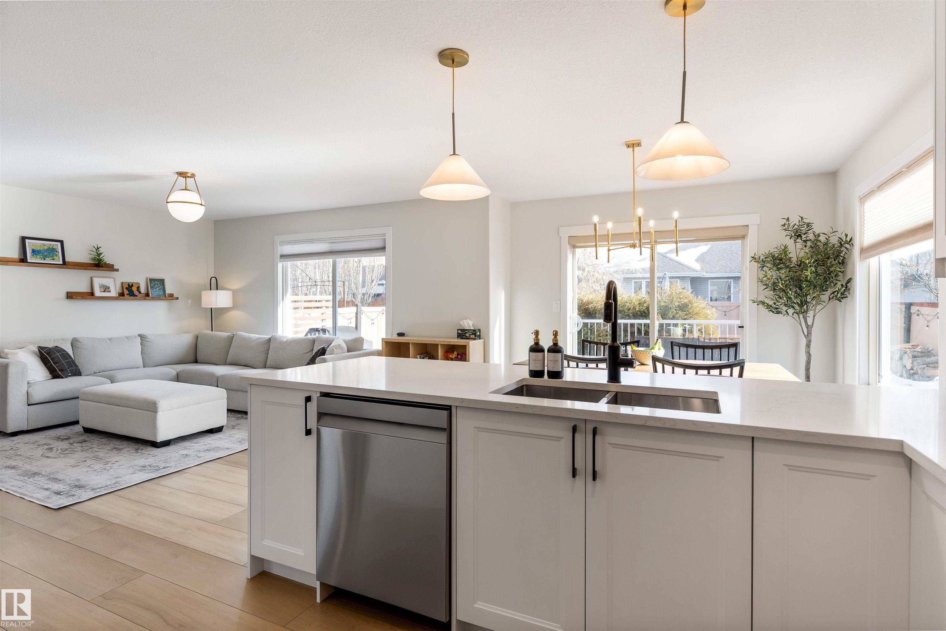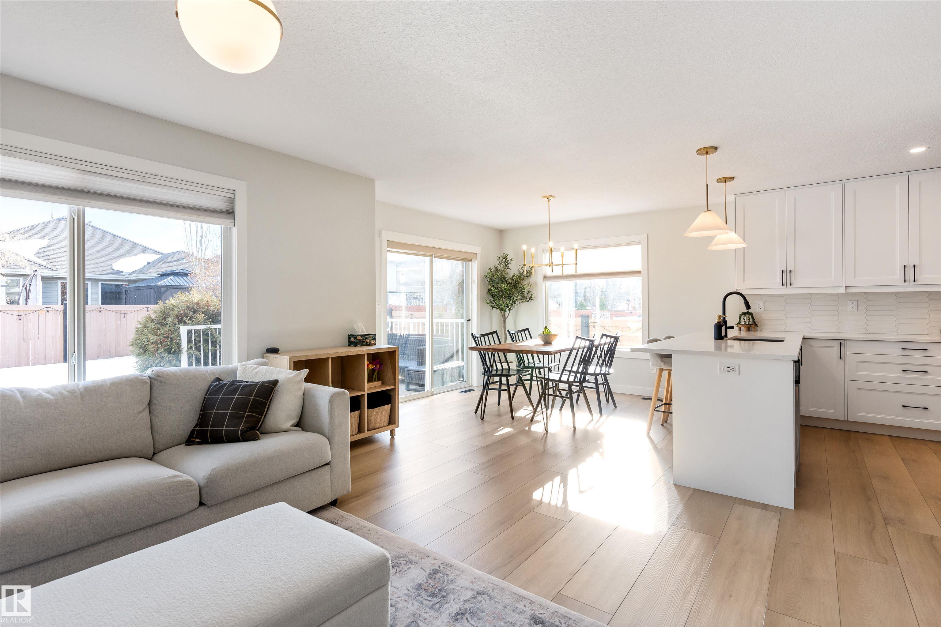 Welcome to this beautifully RENOVATED home in sought after North Ridge. The main floor features new VINYL PLANK flooring throughout, a brand new white kitchen with full height cabinets, custom pantry area with trendy coffee bar station, QUARTZ counter tops, and new appliances. There is a large dining nook with glass doors to the two tiered deck, a warm and inviting living room with a corner gas fireplace with new tile and a renovated half bathroom. Upstairs offers 3 large bedrooms (all with new vinyl plank) and a main 4pce bathroom. The primary bedroom has double closets and a 4pce ENSUITE. The basement is FULLY FINISHED and features fresh paint with a large family room, 4th bedroom, 4pce bathroom and laundry room. This home has an CENTRAL AIR CONDITIONING and a double attached HEATED garage. With new paint, lighting, trim, doors and baseboards - there is nothing to do except move in and enjoy! MLS®: E4473597 - North Ridge 2 Storey $549,900